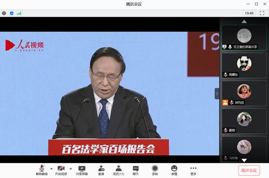 本次报告会由中国法学会党组书记、常务副会长陈训秋同志主持,主讲人为中国法学会党组成员、学术委员会主任张文显。收看期间,同志们认真虚心听讲,对民法典的认识更上一层楼。