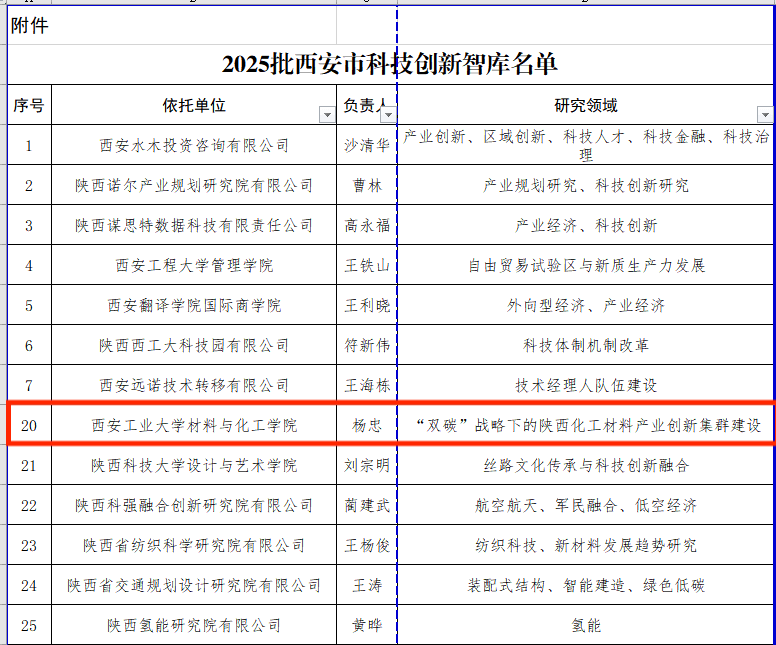 近日,西安市科学技术局正式公布“2025批西安市科技创新智库”认定名单,全市共40家高水平研究团队入选。wedvictor伟德杨忠教授牵头申报的《“双碳”战略下的陕西化工材料产业创新集群建设》成功获批,标志着我们在绿色低碳与新材料交叉领域迈上新的战略高度。