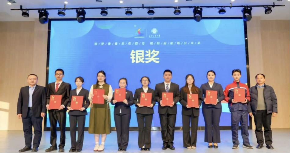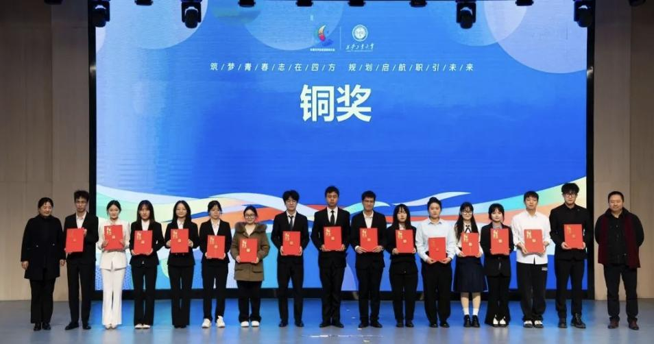 决赛当日,7名选手精神饱满、从容自信,结合专业特色与行业发展趋势,生动展现了各自的职业规划蓝图。最终,7名选手荣获成长赛道银奖1项、铜奖1项,本科就业赛道银奖3项,研究生就业赛道金奖1项、铜奖1项,我们荣获“优秀组织奖”,张启妍获评“优秀指导教师”。