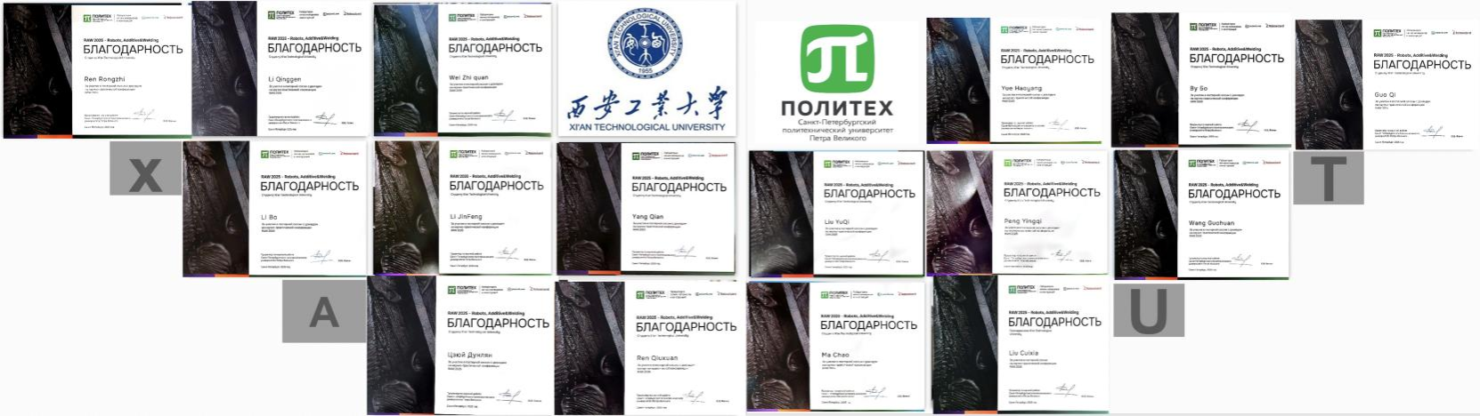 论坛主要围绕高熵合金/石墨复合材料、多孔微波吸收材料、催化剂设计与优化、镍基高温合金强化、电池材料开发、轻量化结构制备、金属增材制造、光催化技术、材料模拟仿真等多个研究领域。由圣彼得堡彼得大帝理工大学主办的“机器人、增材制造与焊接(RAW 2025)”国际会议中,联培学生系统展示了各自在材料科学与工程领域的研究成果,并与俄方师生开展了深入的技术交流,Anton Naumov教授为全体学生颁发了会议参与证书。