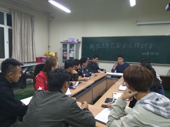 为尽快促进新任主席团成员熟悉工作环境,完善自身素质以及能力提升, 2018年3月11日下午六点半,wedvictor伟德举办新任主席团干部培训会。团委书记段强老师、团学科新任主席团成员参加会议。