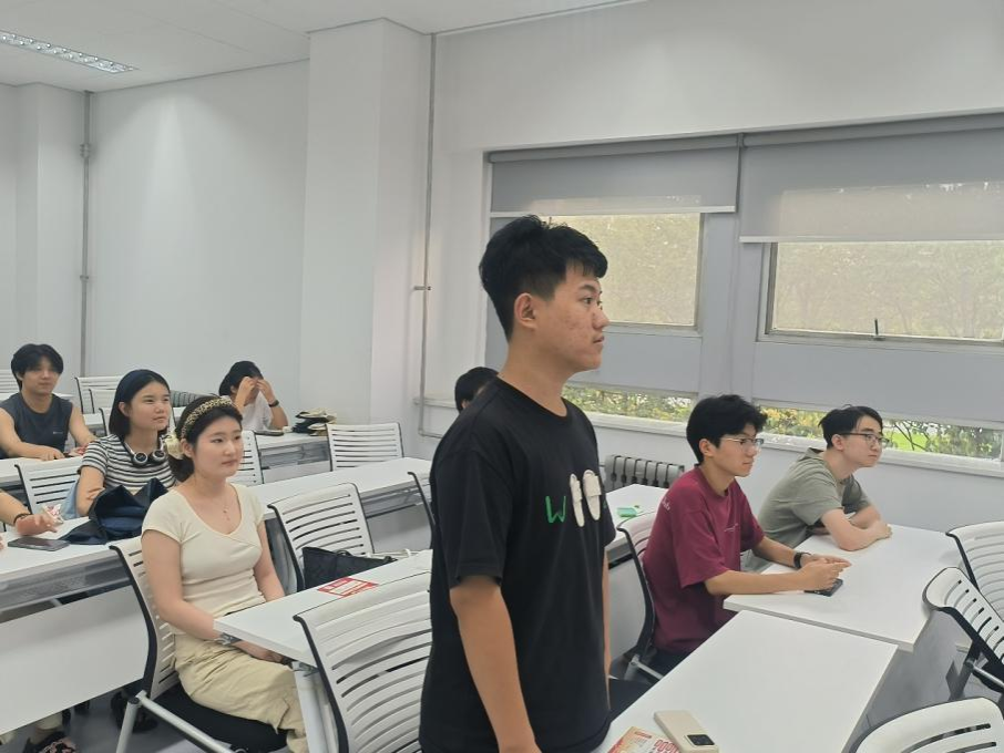 活动伊始,由团支书王思远主持并拉开序幕,她首先点明本次活动的核心目标——探寻传统礼仪在现代社会的传承与发展方向,随后引导大家从礼仪的当代定义切入,阐述礼仪作为“内外合一行为密码”的本质,以及其在快节奏社会中构建和谐秩序的必要性。随后,她依次讲解了传统礼仪“敬、和、雅”的三大精髓,深入阐释其蕴含的尊重他人、追求和谐、彰显雅致的核心要义,为大家展现了传统礼仪在修身养性、人际交往等方面的积极价值,为后续交流奠定了富有启发性的框架。最后环节,姚佳怡与韩德两位同学结合生活实例,提出可在传承传统礼仪时,保留其尊重内核,让传统礼仪在现代生活中自然延续、焕发新彩。