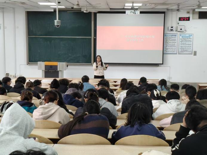 会上,学院党委副书记梁艳峰对2025届毕业生就业情况进行全面总结。她从就业率、就业质量、就业去向分布等方面,详细介绍了2025届毕业生就业整体数据,分析了不同专业就业特点与优势,同时指出当前就业工作中存在的问题,并分享了往届毕业生求职成功案例。随后,学院党委书记陈卫星作2026届毕业生就业动员讲话。他强调,就业是学生成长成才的重要环节,全体2026届学生要树立正确就业观,提前规划职业方向,主动提升专业能力与求职竞争力;学院也将进一步整合资源,搭建就业平台,为学生求职保驾护航,鼓励同学们以积极心态迎接就业挑战。最后,毕业班辅导员张瑞红开展就业指导工作。她围绕简历制作技巧、面试礼仪、求职信息获取渠道等实用内容展开讲解,针对学生常见的求职困惑进行答疑,帮助学生掌握求职核心技能,为后续就业准备奠定基础。