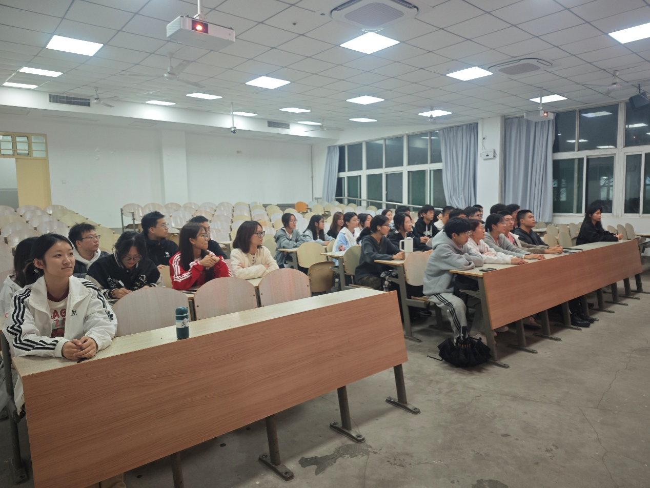 会议伊始,谢金洋以“爱国精神的传承脉络与当代实践”为核心展开讲解。他从历史维度切入,梳理了从革命年代“为国捐躯”到建设时期“为国奉献”,再到新时代“为国创新”的爱国精神演进;同时结合“九三”阅兵中展现的科技实力、红色景点承载的革命记忆、家乡发展折射的时代变迁等鲜活实例,生动阐释爱国精神并非抽象概念,而是贯穿国家发展与青年成长紧密相连的精神坐标。他强调,爱国精神的核心是“家国一体”的信念,具体体现为对国家的忠诚、对民族的热爱,以及立足岗位、奋勇争先的实干担当,这正是激励青年坚定方向、投身强国建设的根本动力。